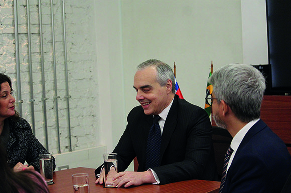 Recientemente, una delegación de estudiantes de diversas instituciones de educación superior de Santiago fue recibida oficialmente en la Embajada de la Federación de Rusia en Chile. La jornada contó con la participación de diplomáticos, encabezados por el Consejero Roman Katarskiy, con quienes los jóvenes sostuvieron un provechoso diálogo. Los estudiantes plantearon inquietudes y preguntas sobre el contexto internacional, los ejes de la política exterior rusa y el estado de las relaciones entre Rusia y Chile.